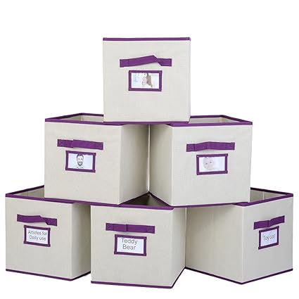 Ikebana 6 Pack Clothes Storage Bins Foldable Storage Cubes Purple Handle Closet Organizers Fabric Drawers With Label Holder