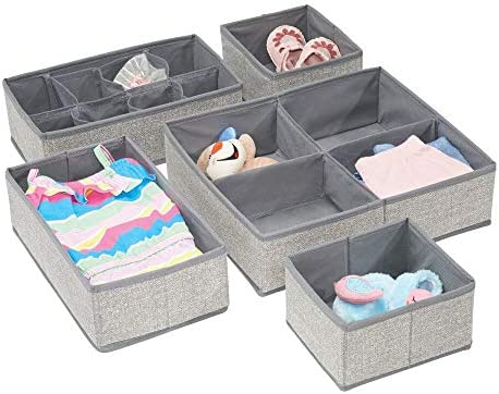Mdesign Soft Fabric Dresser Drawer And Closet Storage Organizer Set For Child Baby Room Or Nursery Large Set Of 5 Organizers Textured Print Gray