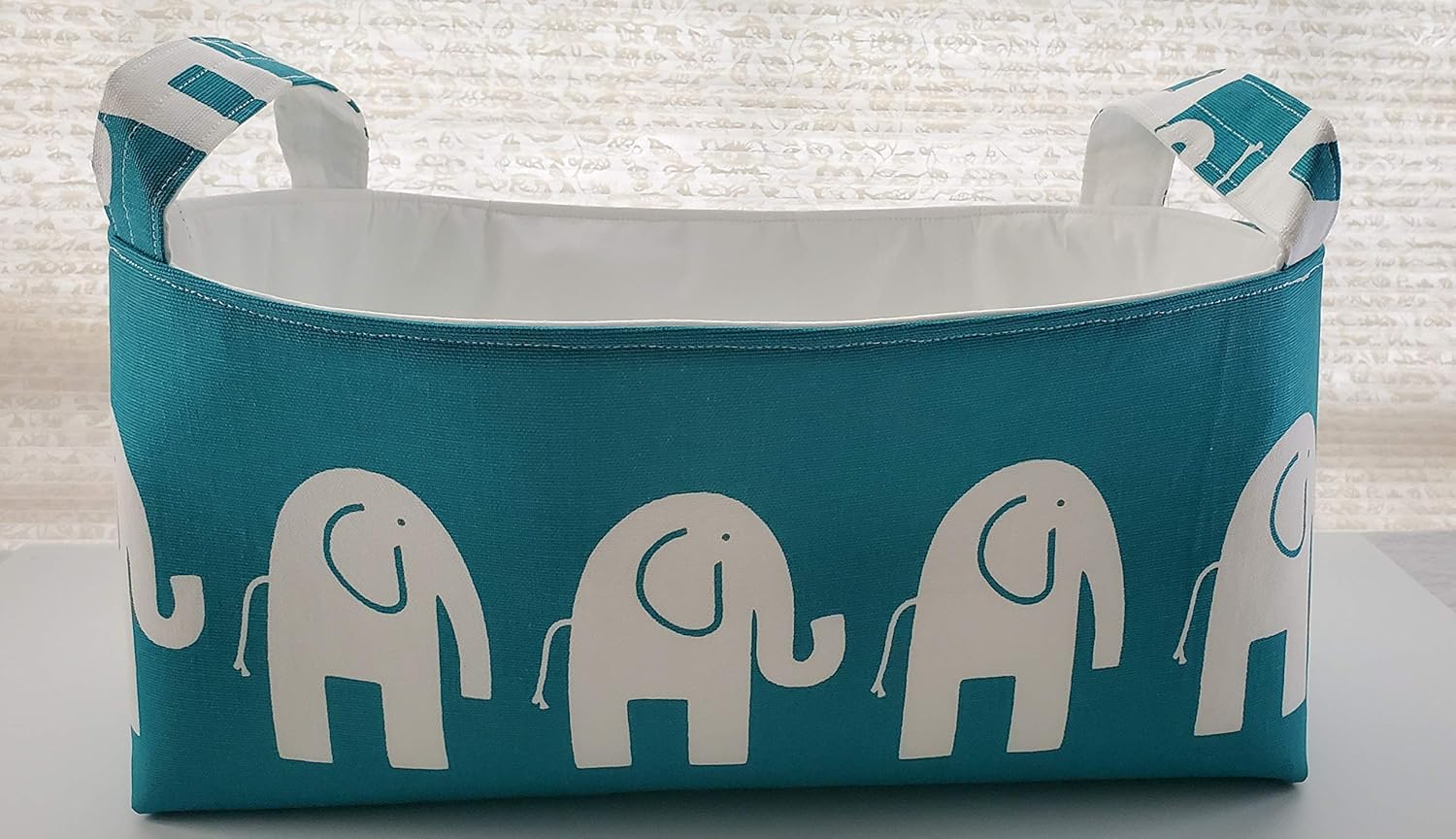 Long Diaper Caddy Storage Container Basket Fabric Organizer Bin Nursery Decor Turquoise With White Elephants Choose Your Lining Color