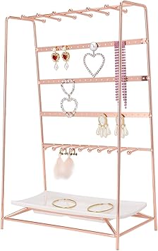 Morigem Jewelry Organizer 5 Tier Jewelry Stand Decorative Jewelry Holder Display With White Tray For Necklaces Bracelets Earrings Rings Rose