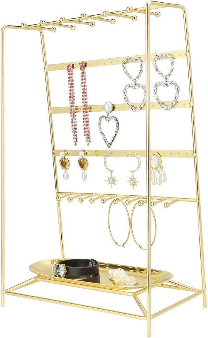 Morigem Jewelry Organizer 5 Tier Jewelry Stand Decorative Jewelry Holder Display With Metal Tray For Necklaces Bracelets Earrings Rings Gold