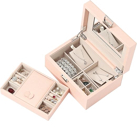 Vlando Jewelry Box Jewelry Organizer And Storage With Mirror And Tray Pink