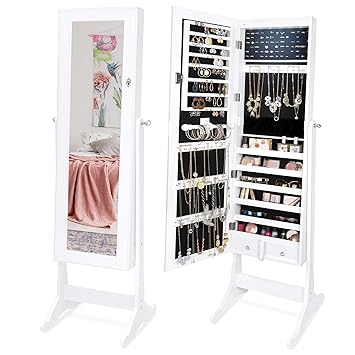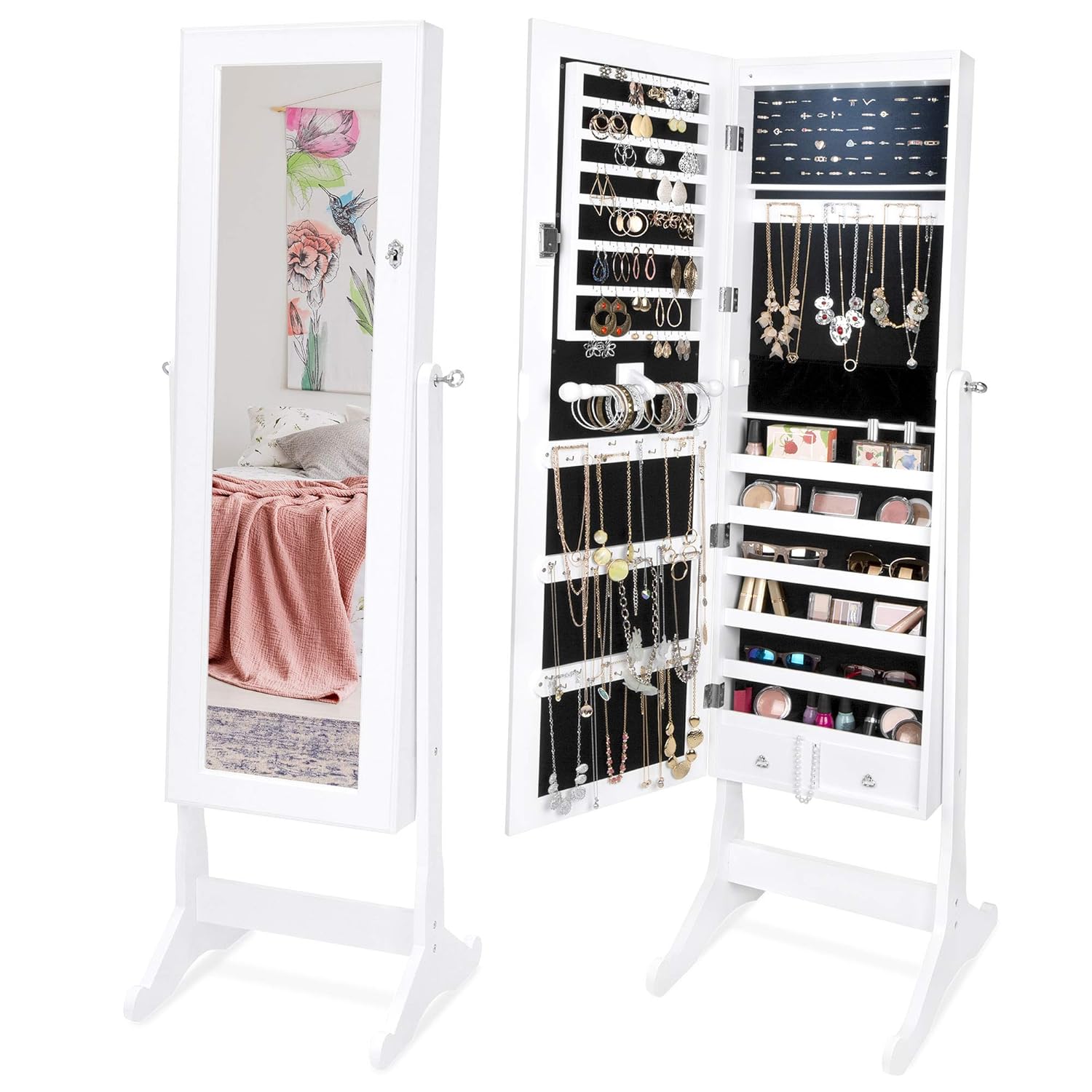 Best Choice Products 6 Tier Standing Mirror Lockable Storage Organizer Cabinet Armoire W Led Lights White