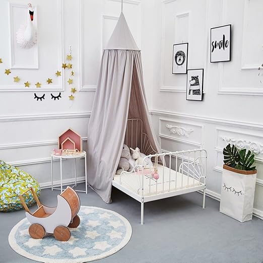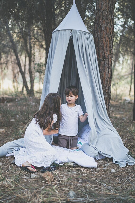 Kids Canopy Grey Cotton Hanging Tent Play Canopy Organic Cotton Bed Canopy