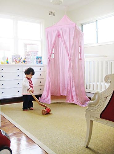 Loisleila New Large Square Kids Bed Canopy Hanging Play Canopy For Twin Bed Pink Stripe