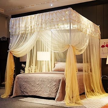 Nattey 4 Corner Poster Princess Bed Curtain Canopy Canopies For Girls Boys Adults Bed Gift Bedroom Decoration Accessories Twin Gold