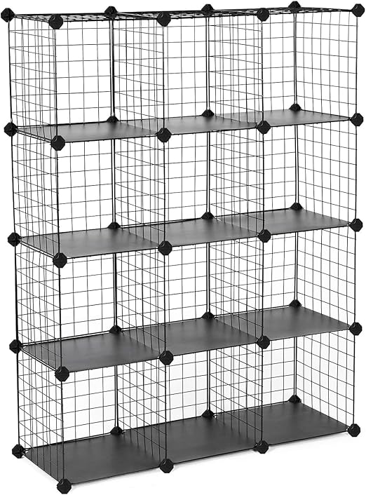 Songmics Metal Wire Cube Storage 12 Cube Shelves Organizer Stackable Storage Bins Modular Bookcase Diy Closet Cabinet Shelf 36 6 L X 12 2 W X