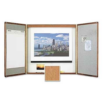 Quartet Conference Room Cabinet With Porcelain Writing Surface 4 X 4 Feet Medium Oak Wood Veneer Finish 853