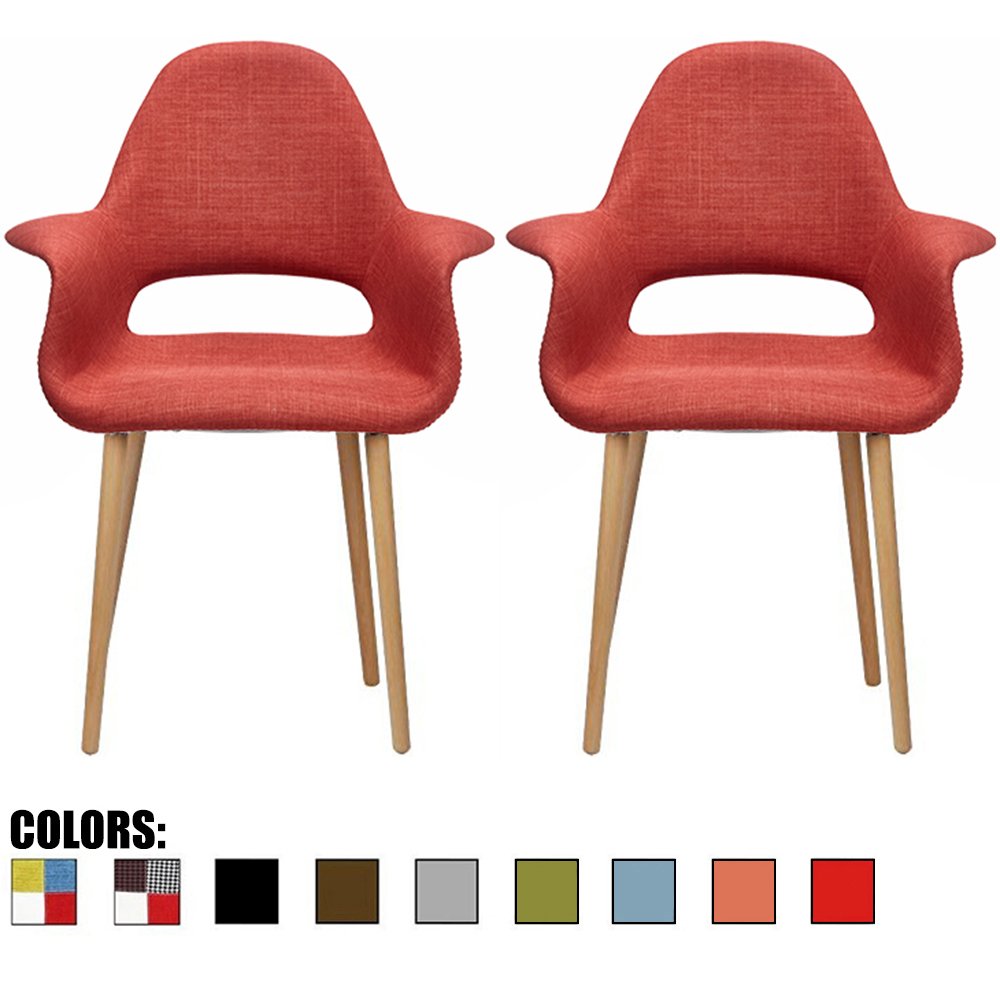 2xhome 2xhome Set Of 2 Red Mid Century Modern Upholstered Fabric Organic Accent Living Room Dining Chair Armchair Set With Back Armrest Dark Black