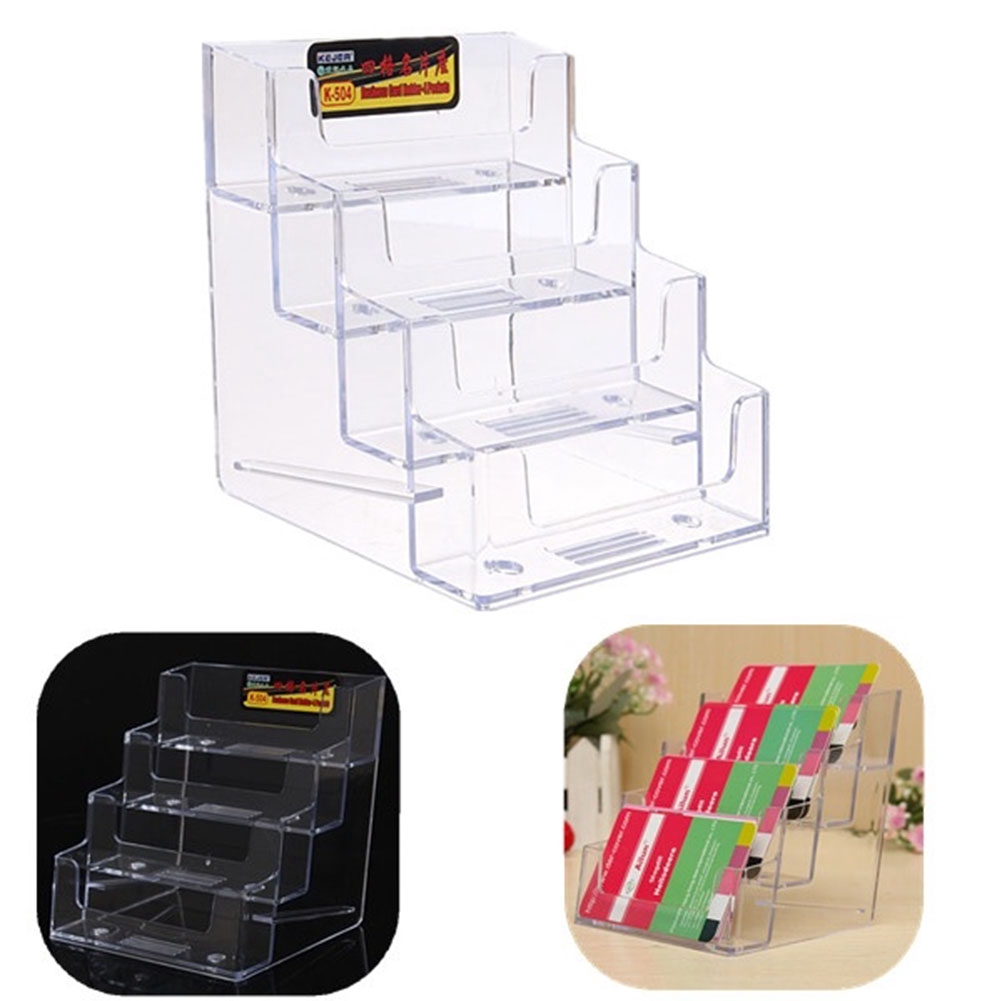 4 Layers Room Clear Acrylic Office Desktop Business Card Holder Display Box Case