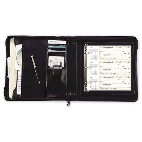 Checksimple 3 Ring Business Check Binder Organizer For End Stub 3 Page Checks Black Zipper Portfolio 1 Qty