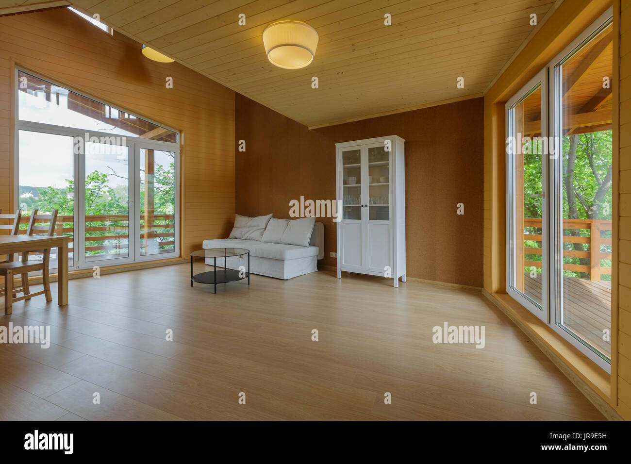 Living Room In A Wooden Organic House Wooden Floor Wooden