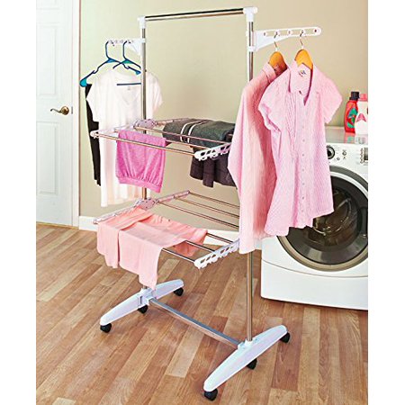 Space Saving Clothes Hanging Drying Portable Foldable Rolling Laundry Room Rack Organization