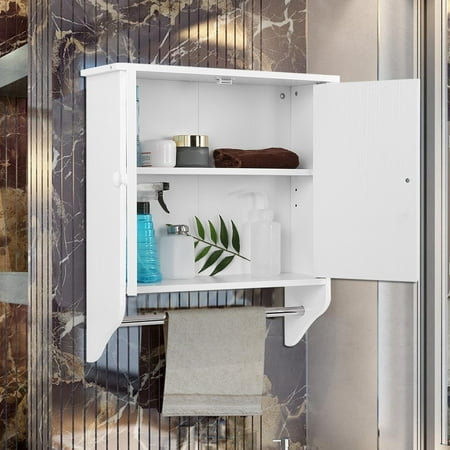 Zerone Bathroom Cabinet Wall Mount Wooden Organizer Towels