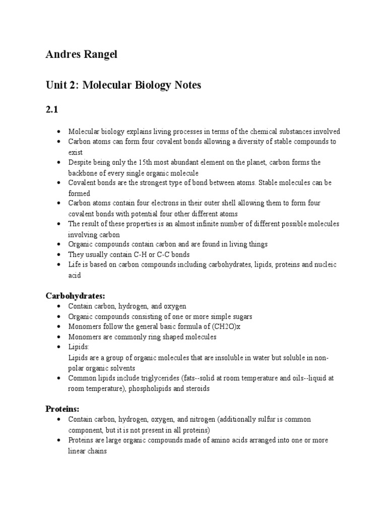 Unit 2 Molecular Biology Cellular Respiration Enzyme