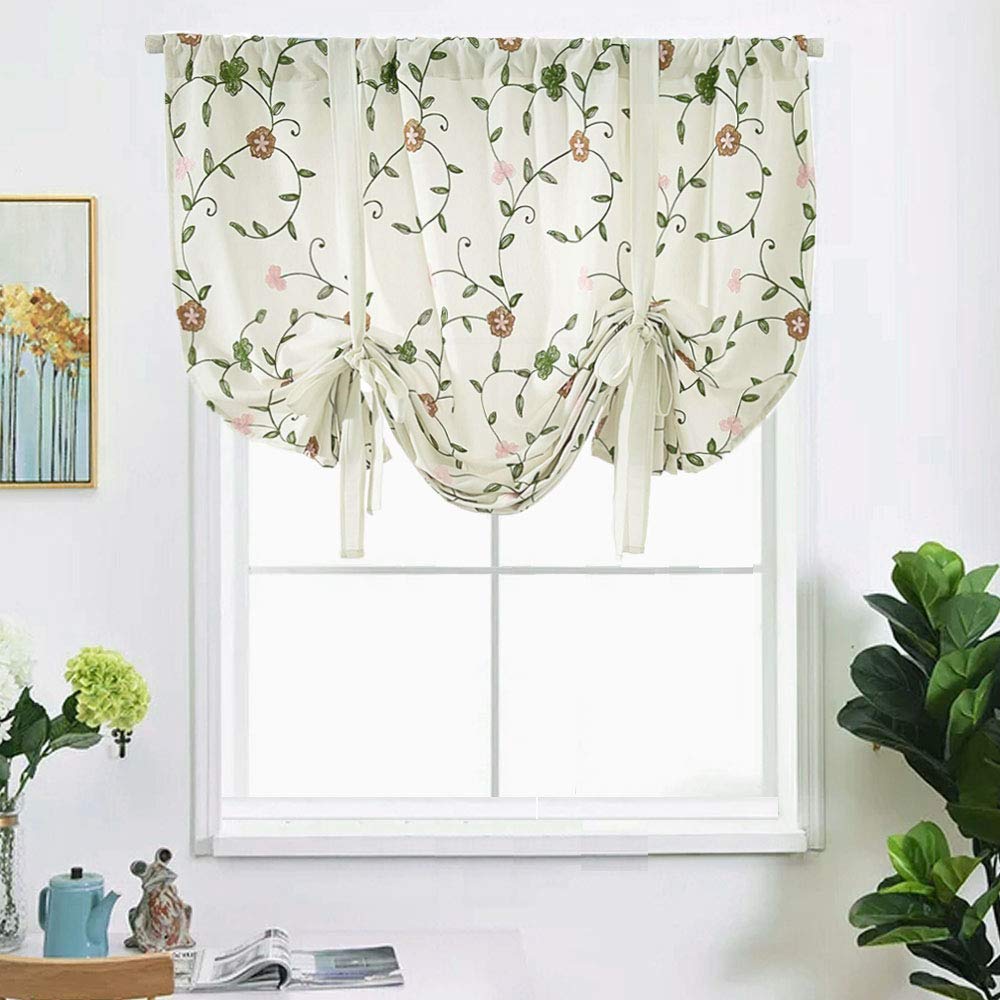 Wubodti Embroidered Curtains 63 Inch Length Floral Embroidery Drapes Tie Up Shades For Small Windows Blackout Room Darkening Thermal Insulated Valance
