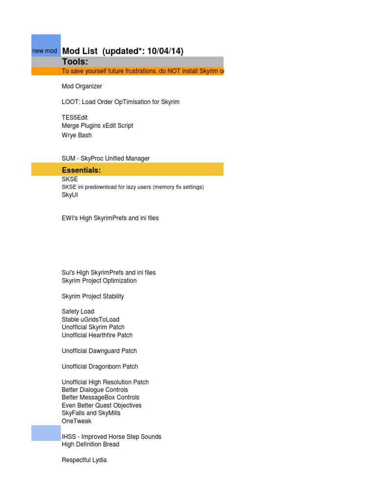 Skyrim Mod List Xlsx Texture Mapping Leisure