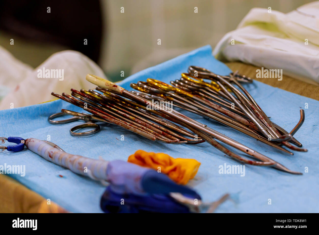 Sterile Instruments And Metal Tray In Operating Room Stock